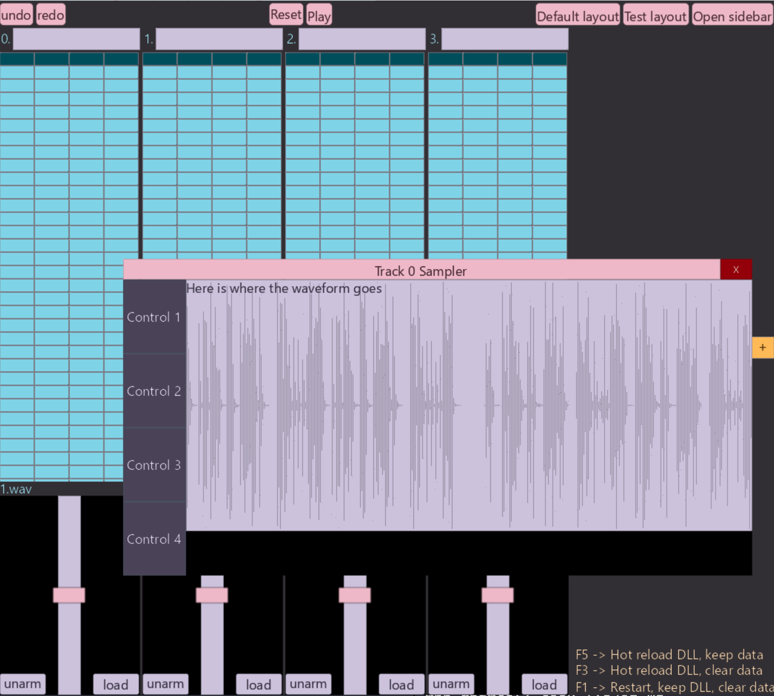 miniaudiofor the PCM data when I need it? That's a problem for another day... - The main UI is made up of a bunch of tracks, each track has a corresponding sampler. You can